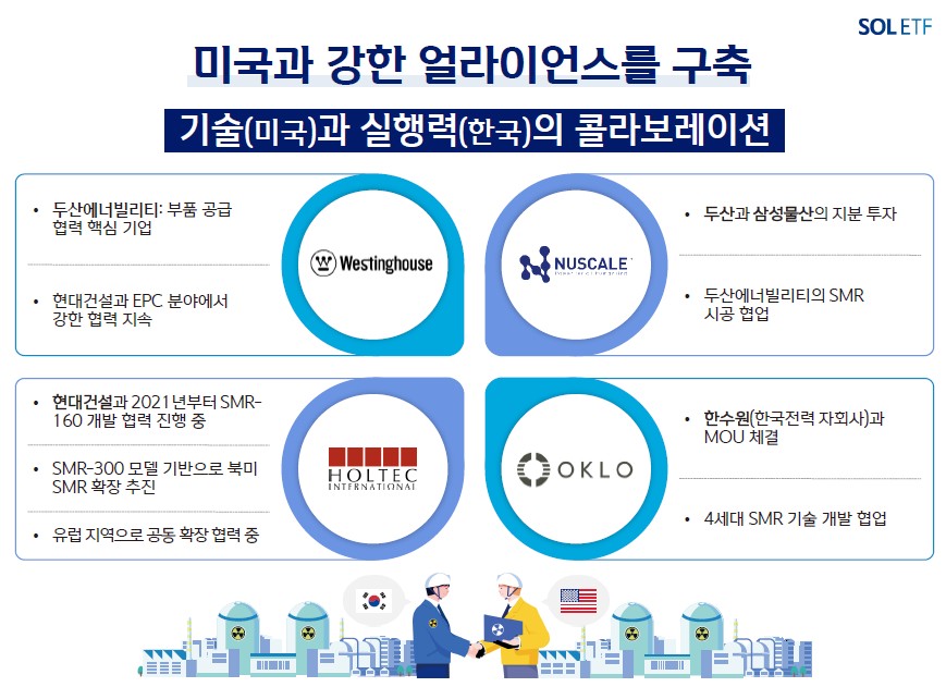 SOL 한국원자력SMR ETF는 원전의 설계, 기자재 생산, 건설, 운영 등 전반적인 밸류체인을 아우를 것으로 보입니다.