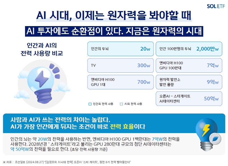 AI 혁명은 이제 시작입니다. 이는 곧, 전력 수요의 구조적 성장이 장기간 지속될 것임을 의미합니다. SOL 한국원자력SMR ETF는 이러한 시대적 흐름에 가장 효과적으로 올라탈 수 있는 투자 도구 중 하나입니다.