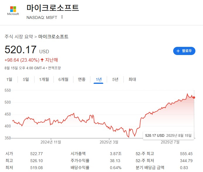 AI 혁명의 최전선에서 시장을 주도하고 있으며, 안정적인 배당으로 하방 경직성까지 갖춘 마이크로소프트는 2025년 이후에도 가장 유망한 미국 주식 투자처 중 하나임이 분명해 보입니다.