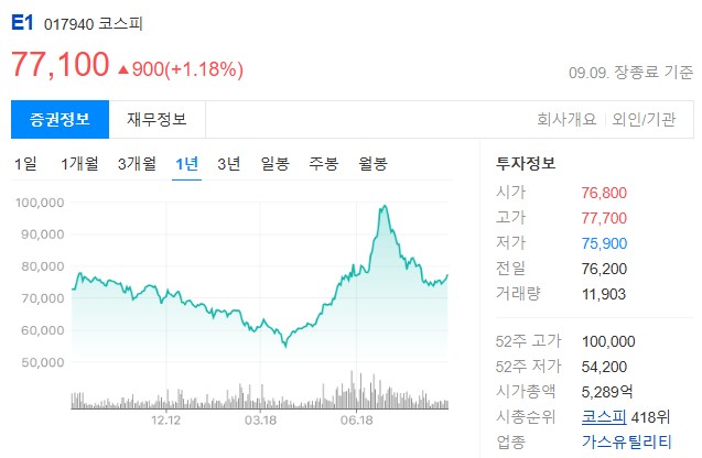 안정적인 실적과 높은 배당 매력을 바탕으로 증권사들도 E1에 대해 긍정적인 전망을 내놓고 있습니다.