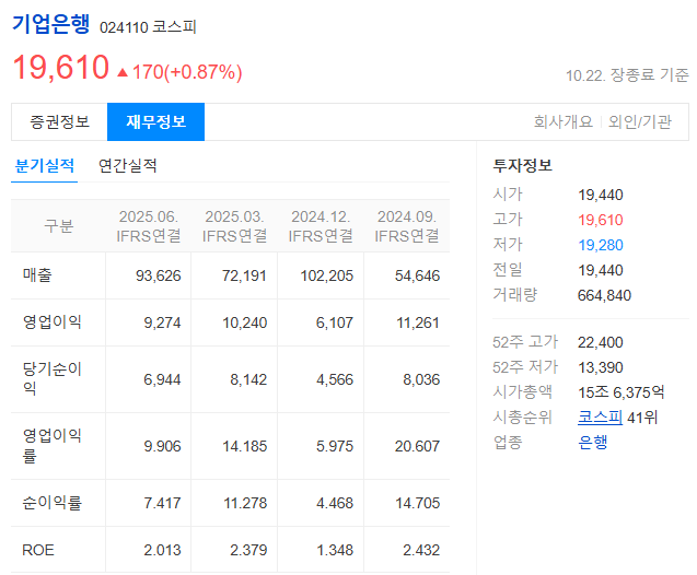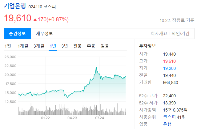 1. IBK기업은행 현주가 분석 (2025. 10. 22. 기준)