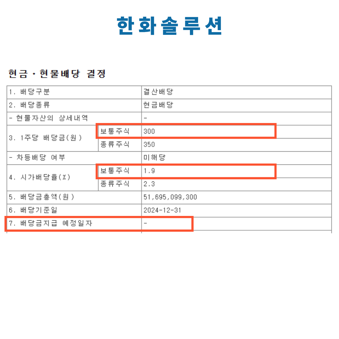 ● 최근 배당 이력: 한화솔루션은 2024년 결산 배당(2025년 4월 지급)으로 주당 300원의 현금 배당을 실시했습니다.