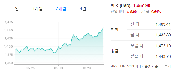 ★ 글 작성 25.11. 8. 12:40 기준으로 원달러환율 1,462원 입니다.